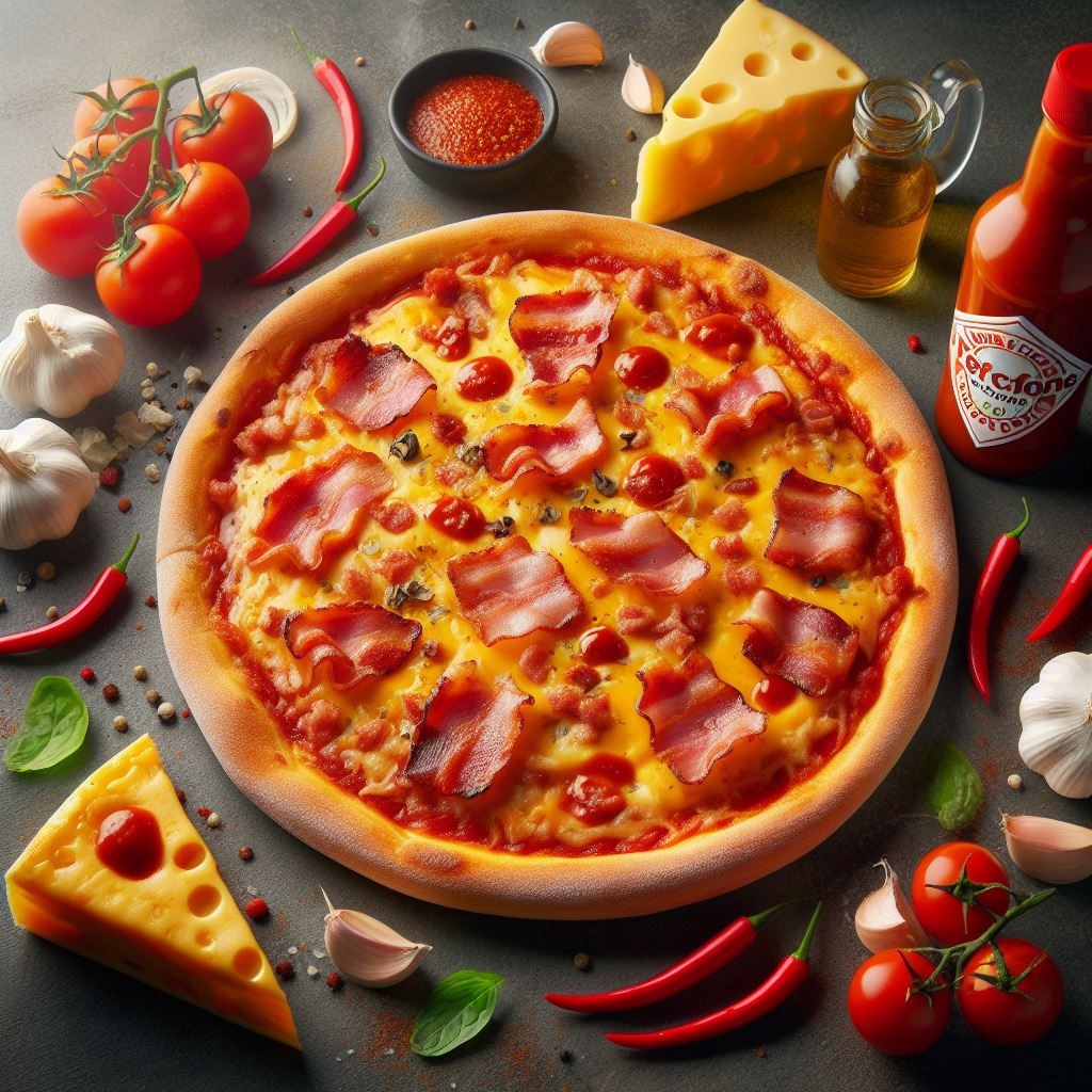 Sos amerykański (ostry), Mozzarella, Pepperoni (kiełbasa), Bekon, Cebula, Chili (przyprawa), Papryka jalapeno39,00 zł57,00 zł89,00 zł