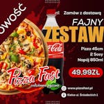 Pizza 45cm + 3 wybrane składniki + 2 sosy (do wyboru) + napój 850ml (Coca-Cola, Fanta, Sprite)